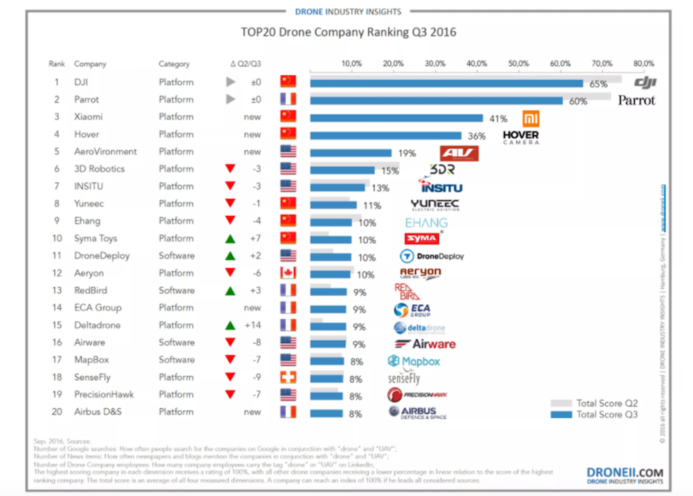 参考:“TOP20 Drone Company Ranking Q3 2016”