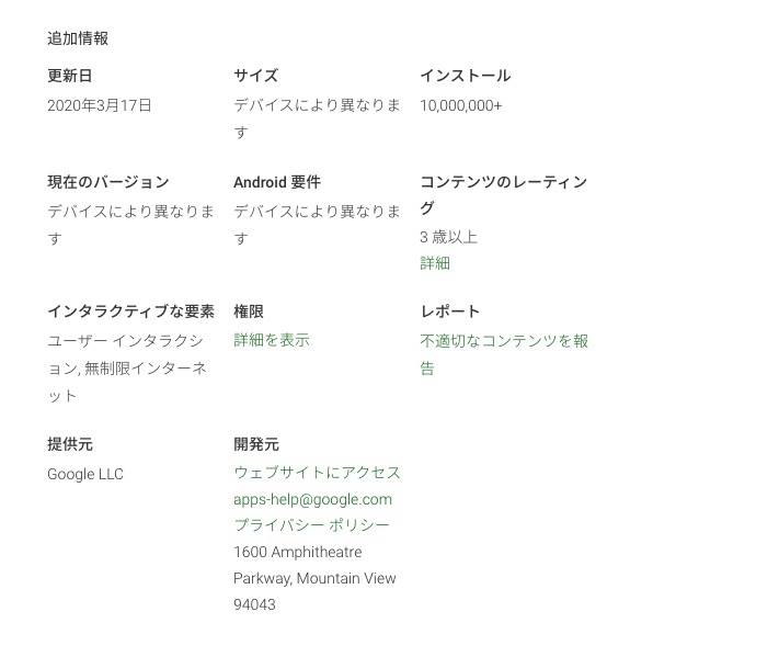 もちろん、利用しているスマートウォッチが古い機種の場合などは、最新のOSに対応してないこともあります。Android系の場合、非常に多くの端末がリリースされているため、端末ごとに対応するバージョンも異なっています。Google Playを確認してみると、「サイズ」「現在のバージョン」「Android要件」の各項目が「デバイスにより異なります」となっています。注4