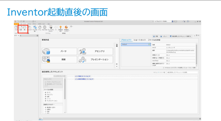 InventorのUIはWindowsに近く、直感的に使えるようになっています。しかし専門的な部分もあるので、ここでは起動直後のUIやファイルの開き方、パーツ作成の簡単な流れについて使い方を解説します。