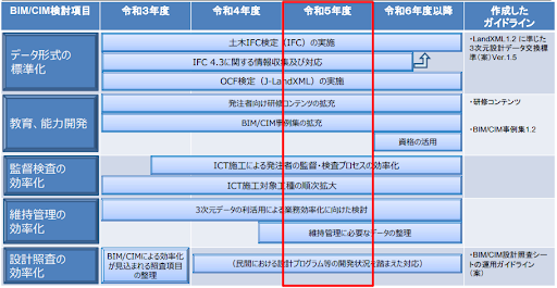 令和6年度以降は、これらの取り組みを継続するほか、円滑な事業実施のためのBIM/CIMの活用方法の検討が開始されます。事業実施の過程でどのようにBIM/CIMを活用していくべきかが「BIM/CIM活用ガイドライン(案)」などにまとめられる予定なので、チェックしておきましょう。