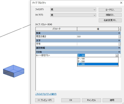 また、パラメータのデータ型設定も重要です。「長さ」「数値」「テキスト」「材料」など、適切なデータ型を選ぶことで、Revitのカテゴリ設定に応じた項目を正しく入力できます。